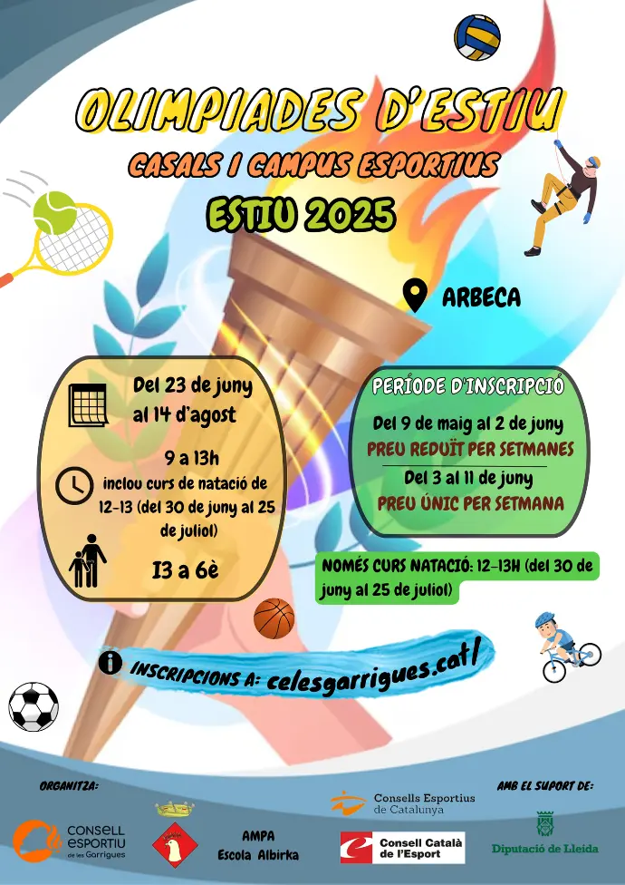 Aquest estiu us esperem per gaudir d’unes OLIMPIADES tot superant multitud de proves i reptes que ens ho faran passar molt bé!! I sempre amb bona companyia.