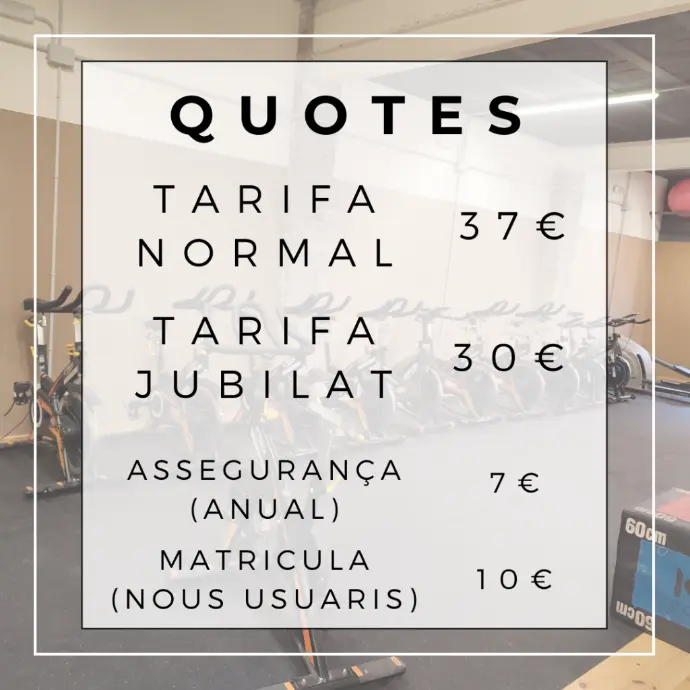 37 EUROS AL MES AMB DRET A TOTS ELS SERVEIS I ACTIVITATS DEL GIMNÀS.