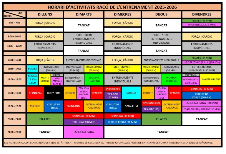 HORARIS DEL RACÓ DE L’ENTRENAMENT: